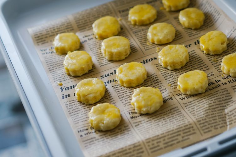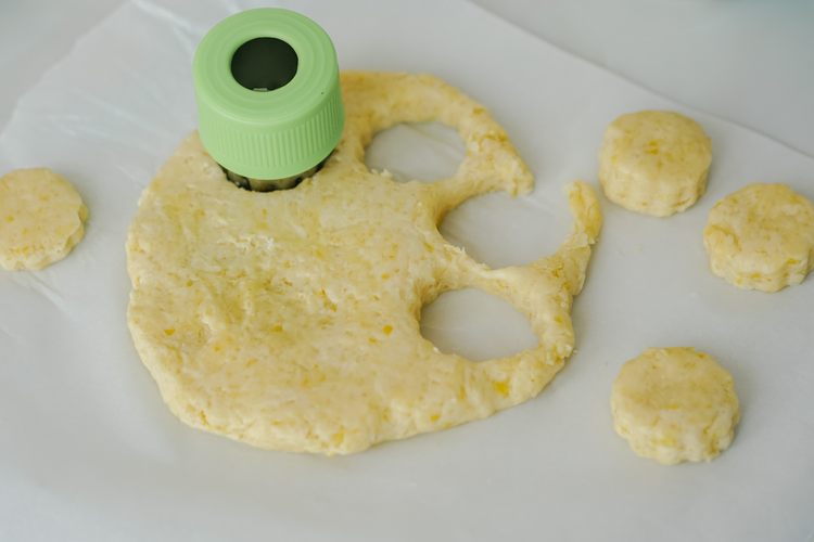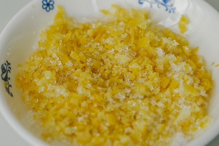 一般司康的个头都不小,吃一个总觉得噎得慌,这次做成迷你款,一口一个;做玛德琳的时候偏爱加糖渍柠檬皮,这次运用到司康上,被惊艳到了,烤制时满屋飘香!