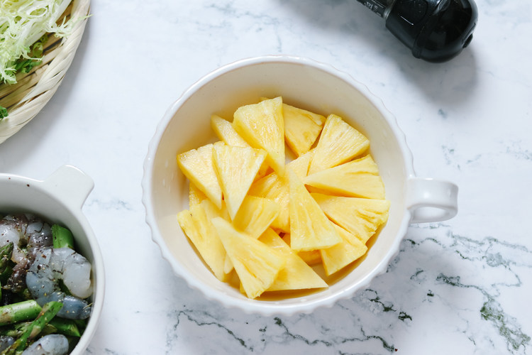菠萝上市的季节,用菠萝和虾仁搭配沙拉菜做一份美味的沙拉,淋上油醋汁,让你分分钟爱上吃草~
