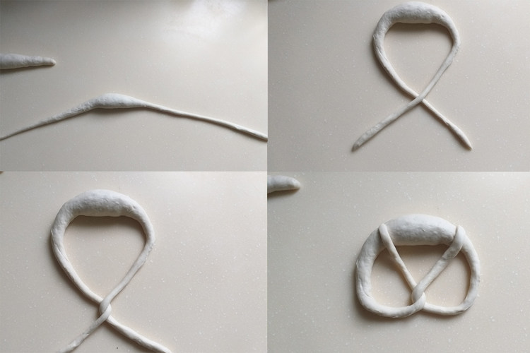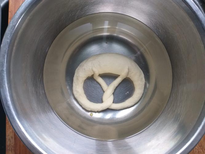 1. 做碱水包的要点是整形前,面团必须是低温未发酵状态,这样烤出来的普雷结才会光滑。