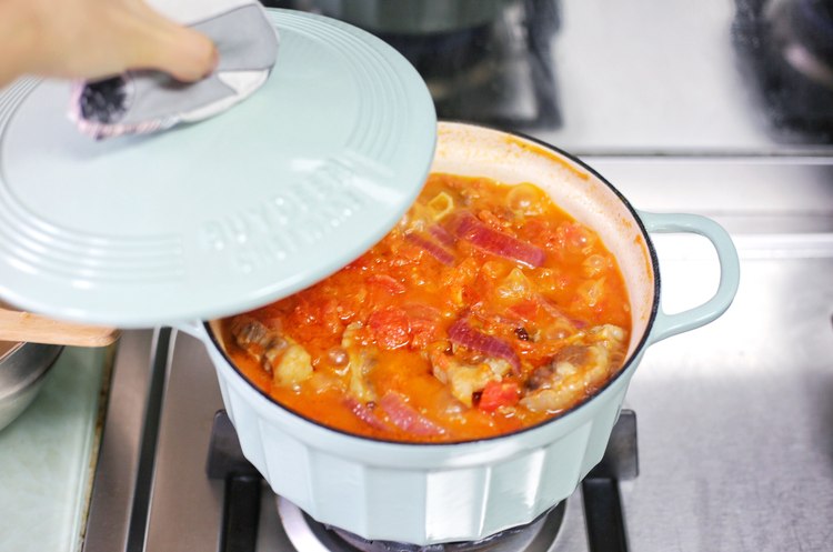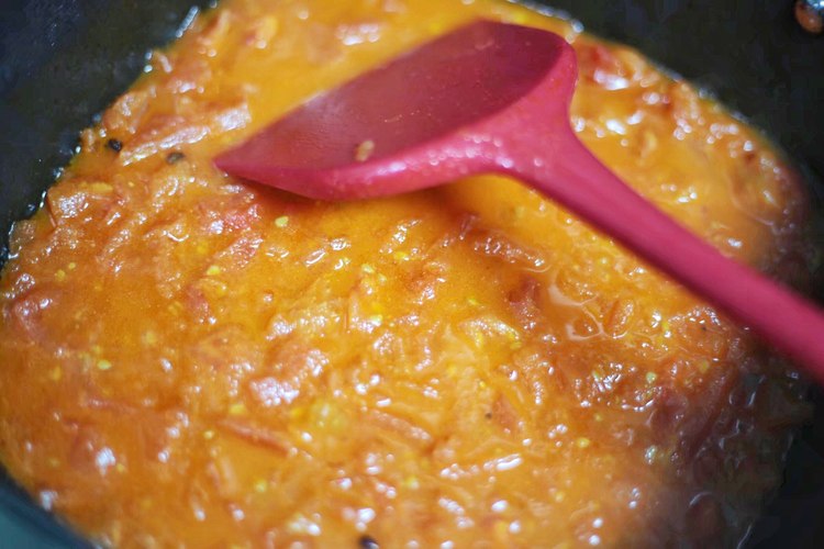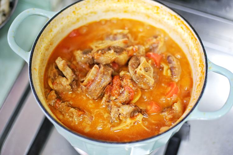 用筷子试试,待食材都炖到你要求的软糯程度(小孩老人吃的话可以软一些),开盖中火收个汁儿,期间注意翻动避免火大糊底,并加入盐、番茄酱调味。ps:还可以放点儿酱油提色。
