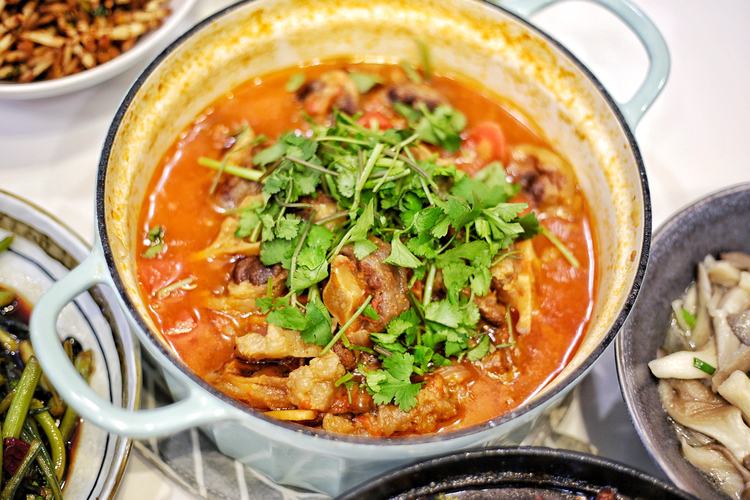 盖锅盖、中小火焖1小时左右,期间隔15分钟揭盖翻炒均匀,同时可根据需求继续加高汤焖煮。