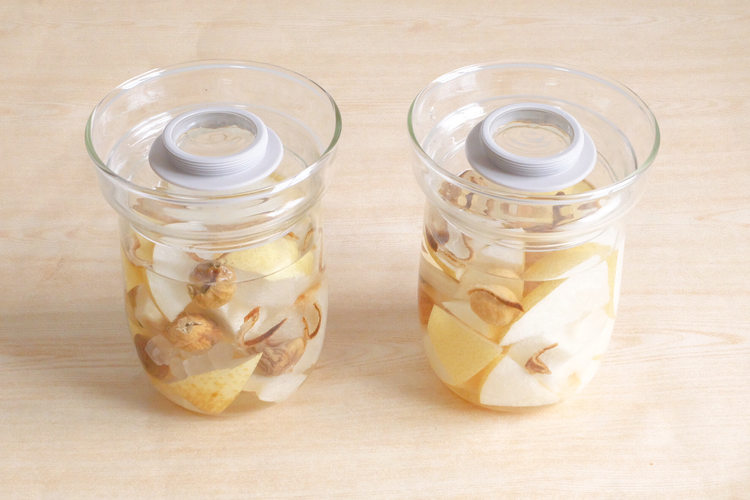 无花果干,是一种高蛋白,高维生素,高矿物质,低热量的食材,还有很好的食疗功效。搭配雪梨,有清肝泻火解毒的效果。