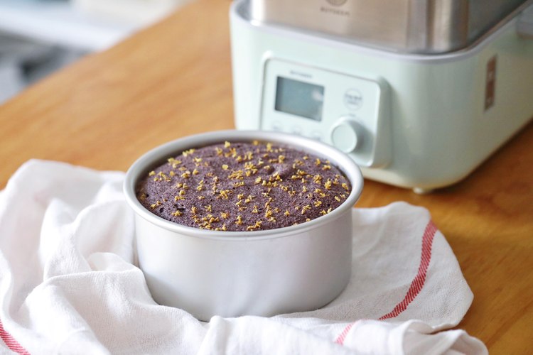 用黑米蒸出来的蛋糕,口感绵软,营养丰富,再搭配清香四溢的桂花,还没出锅就可以闻到满屋子的香味了!