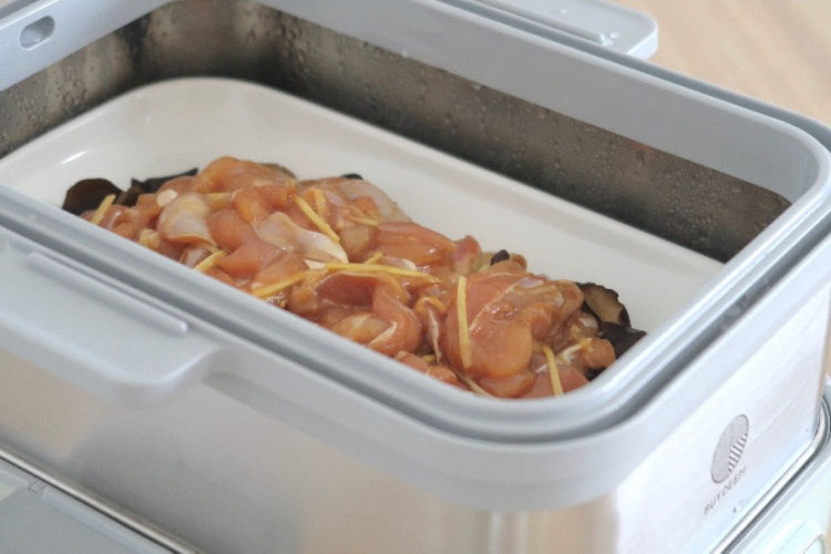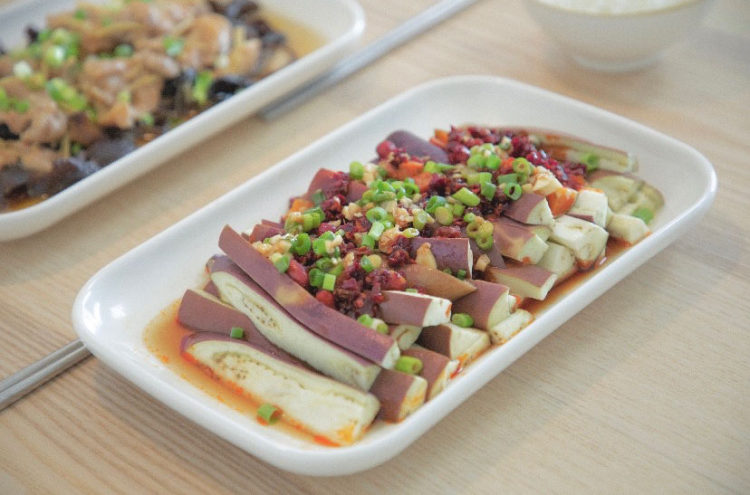 香菇蒸鸡腿肉+老干妈蒸茄子