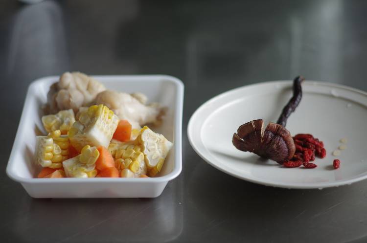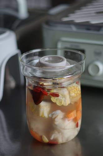 灵芝玉米鸡肉炖盅食材如下