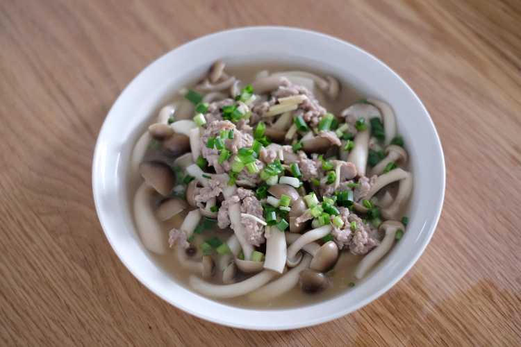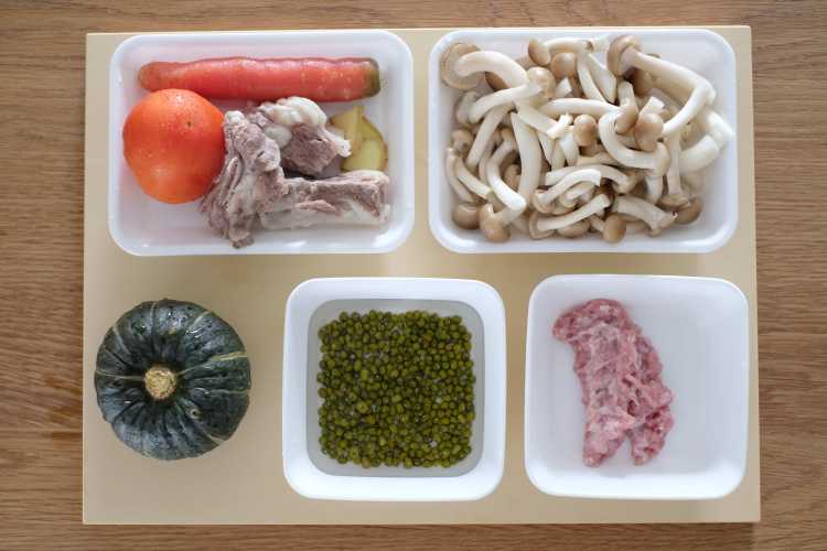 肉末蒸蟹味菇+牛排骨番茄胡萝卜汤+绿豆南瓜汤