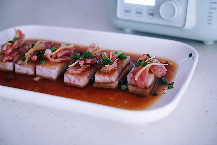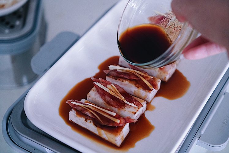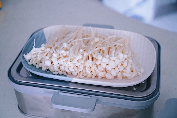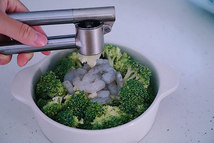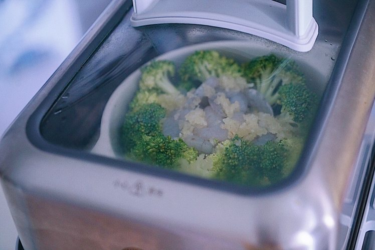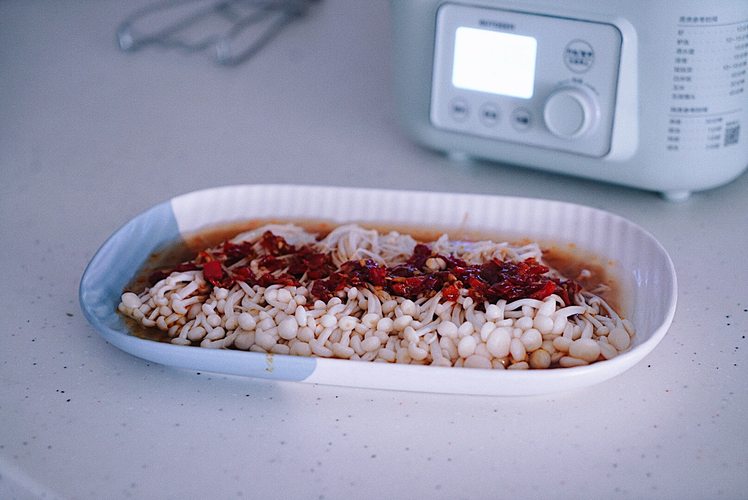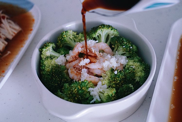腊味蒸芋头+剁椒金针菇+蒸拌虾仁西兰花