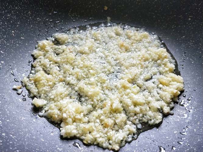 蒜瓣和姜切成姜蒜蓉;小米辣和香葱洗净备用。炒锅放油,倒入切好的2/3姜蒜蓉,小火煸炒出香味。