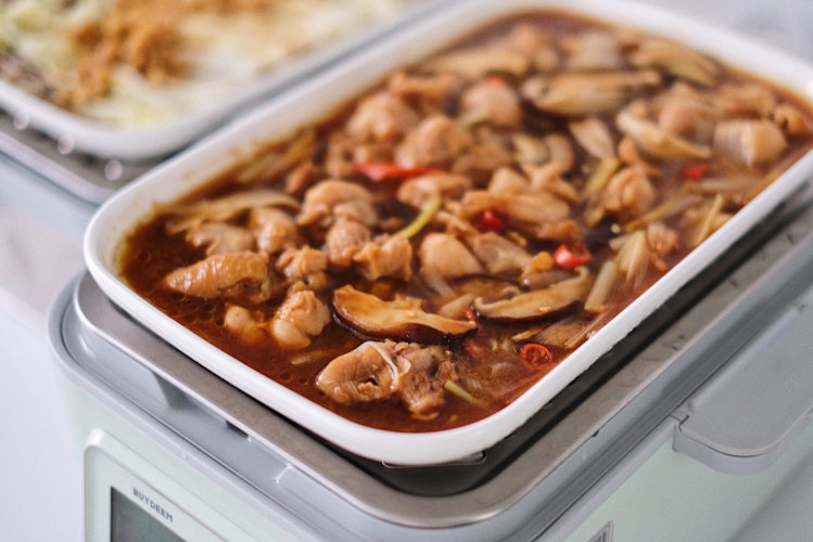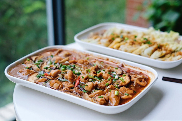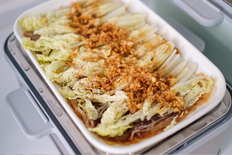 香菇蒸鸡腿肉+蒜蓉粉丝娃娃菜