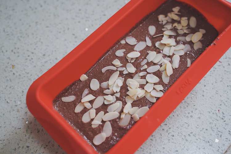 找一个蛋糕磨具倒入,震一下让表面平整,表面撒上杏仁片。