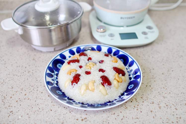 1. 这个方子的量可以做2份中碗的八宝饭,北鼎的小仙绿养生壶做起来非常快手。