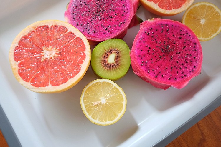 选择喜欢的水果,我用了猕猴桃,西柚,柠檬,火龙果,都是颜色好看的水果,泡出来水颜色也好看,酸甜搭配也刚好。