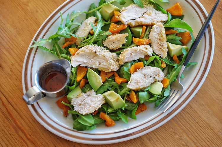 脆米烤鸡胸搭配沙拉简直太好吃咯,有盐酥鸡的口感,又不需要油炸,外酥里嫩,脆米芝麻香香脆脆,南瓜香甜,芝麻菜和穿心莲清爽又有香气