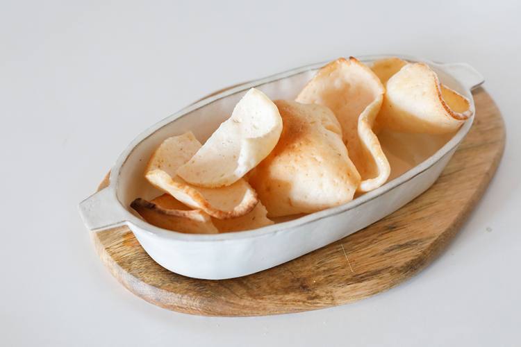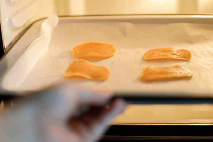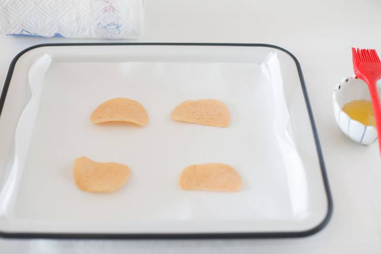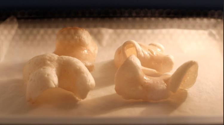 2. 看到虾片不再长大,立刻将虾片葱烤箱里取出来,一定要记得不要等太久,毕竟230度的高温,很容易会糊了,别问我怎么知道的。