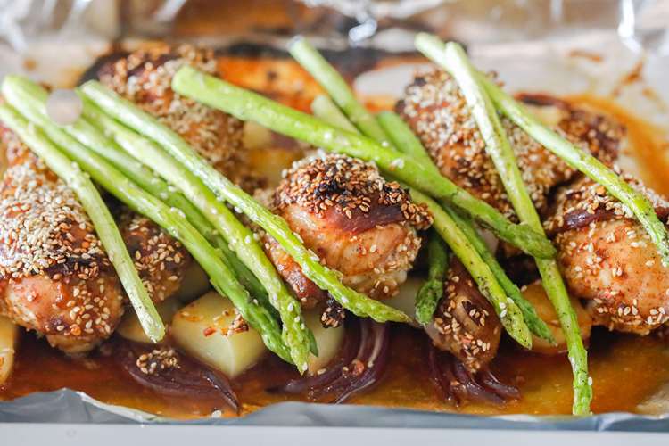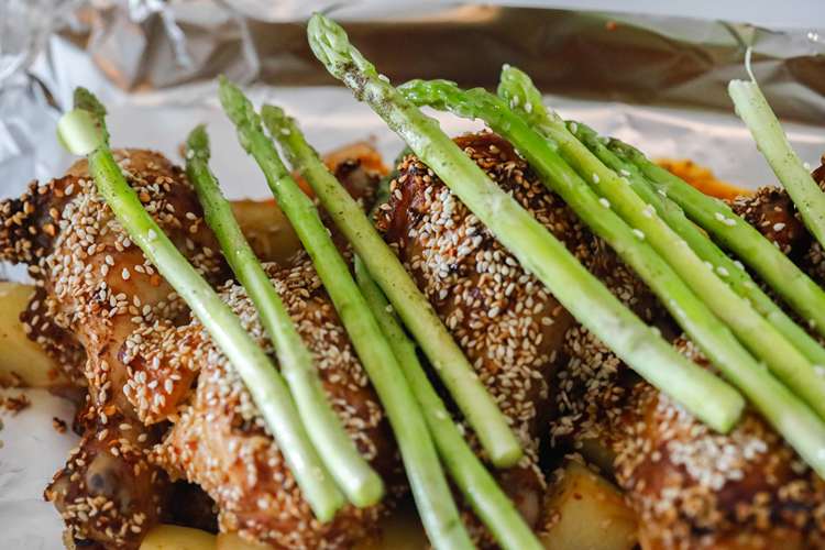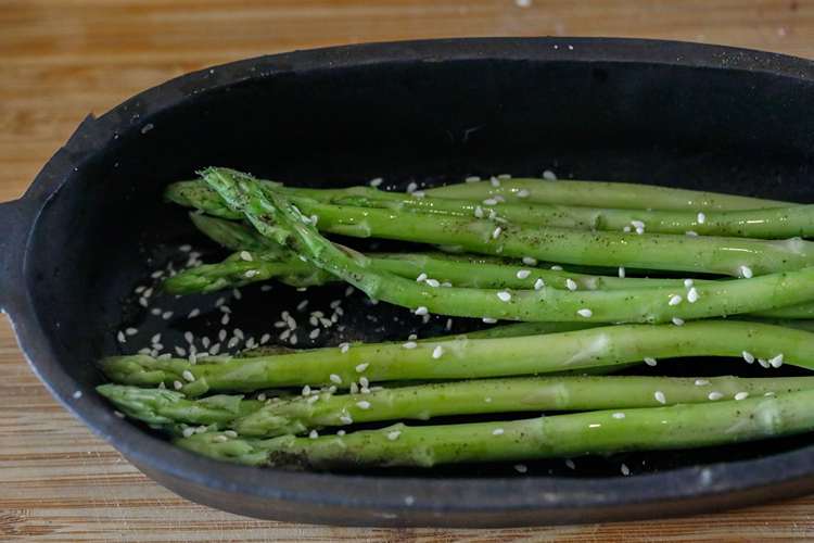 6. 芦笋不能一开始就放进去一起烤噢,芦笋很嫩,烤时间太长就蔫了不好吃了。