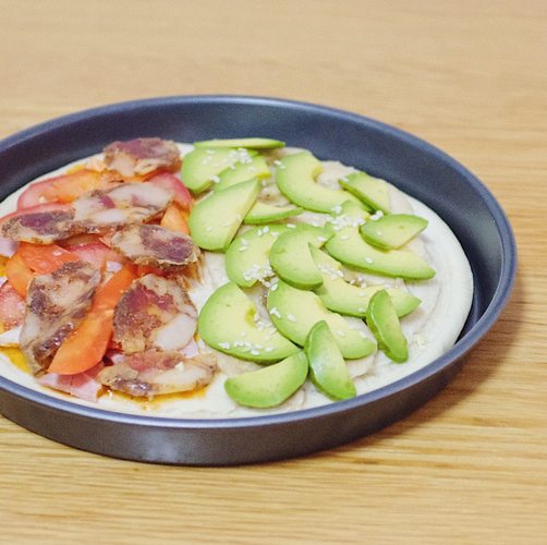 培根腊肠+香蕉牛油果双拼披萨