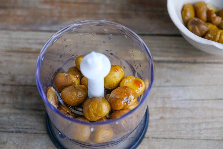 2. 栗子我直接用的外面卖的炒栗子,栗子部分由于栗子的干湿程度也不同,建议根据自己栗子的情况适当增减牛奶。