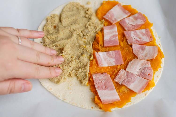 3. 卷饼皮我用的是麦西恩,还有菠菜和全麦的,这个烤出来边有点脆脆的感觉。