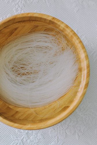 粉丝用凉水泡软。
