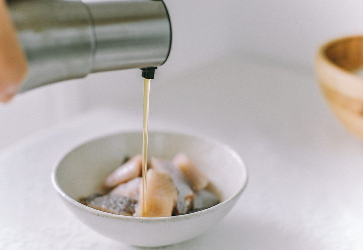 铺上龙利鱼,再把剩下的酱汁淋上去。