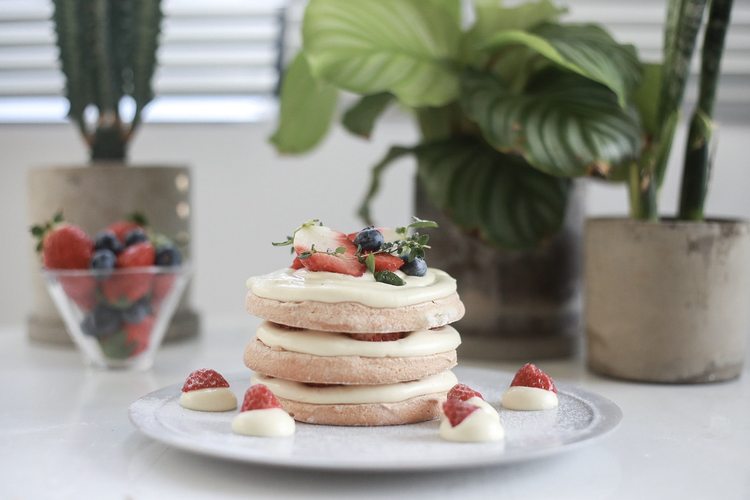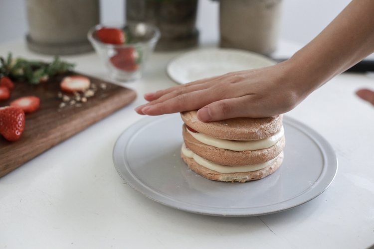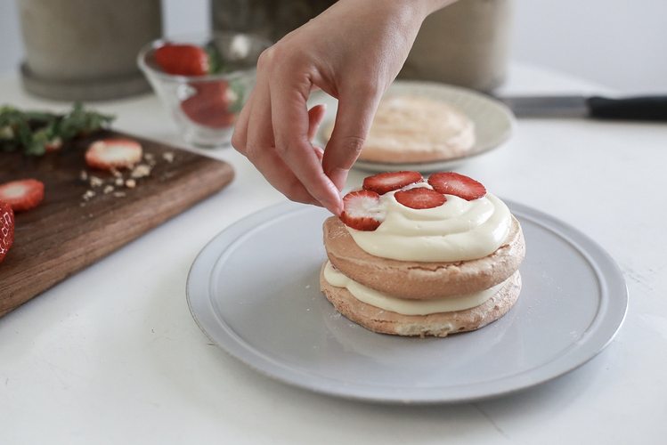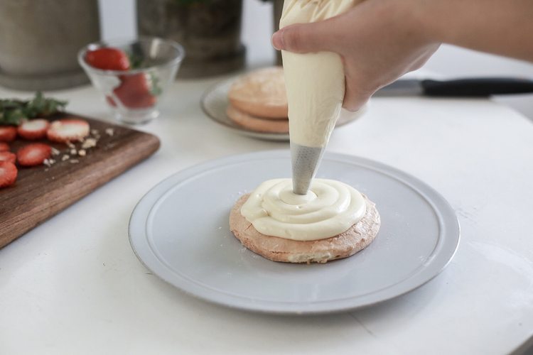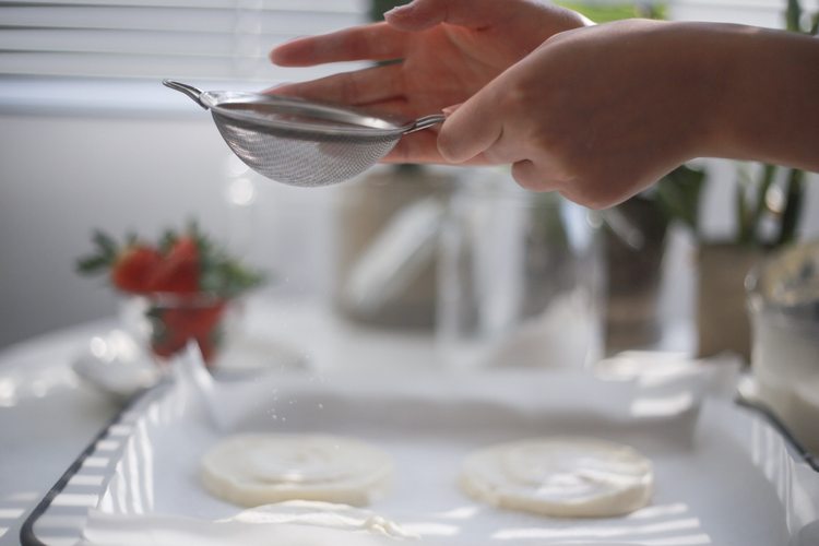 取下模具后,在圆形面糊表面筛两次糖粉。
