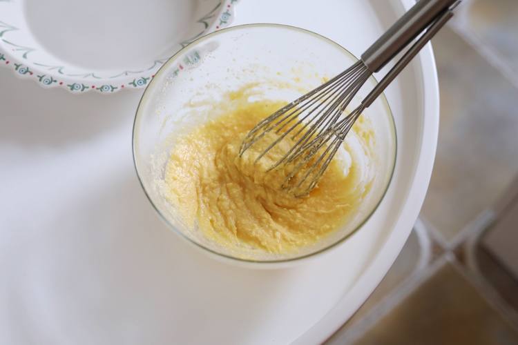 准备杏仁奶油馅。软化黄油加糖盐搅拌至融化,加入蛋液搅拌,筛入杏仁粉,搅拌均匀。