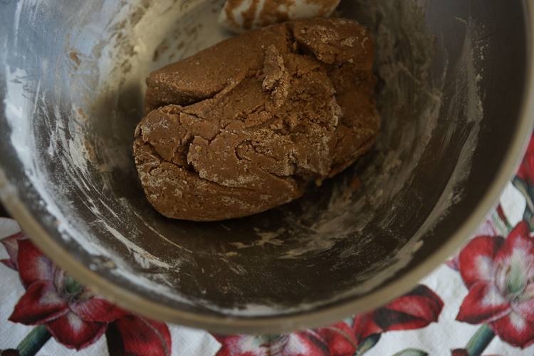 预拌粉中加入蜂蜜和鸡蛋用刮刀不断搅拌成团。开始会很粘,一定能成团的。
