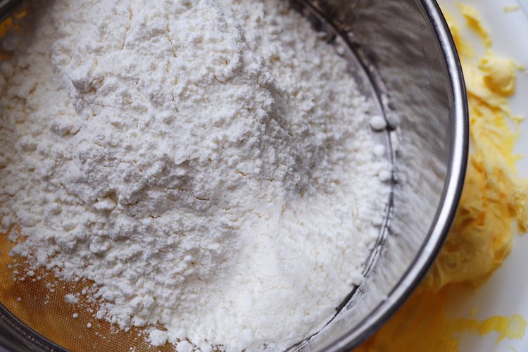 再将低筋面粉,玉米淀粉混合加入过筛。