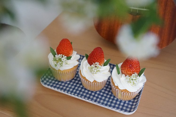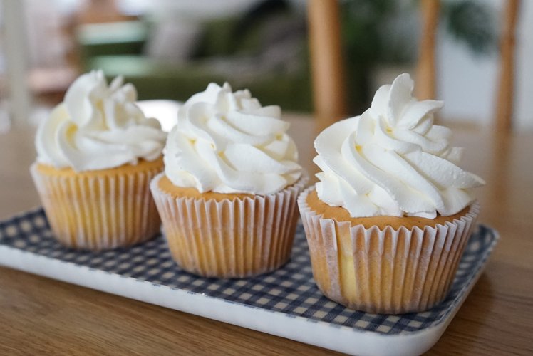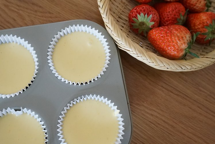 将混合好的面糊倒进纸杯模具里,八分满,轻轻震掉气泡。