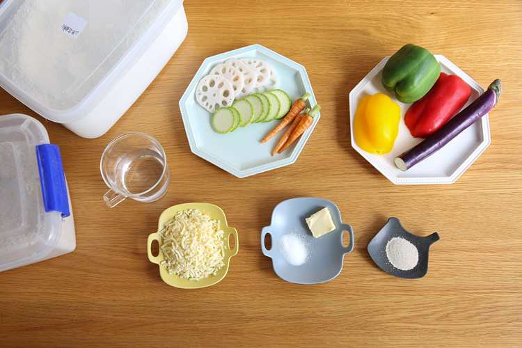 准备食材。没有亚麻籽粉可换成等量的全麦面粉。