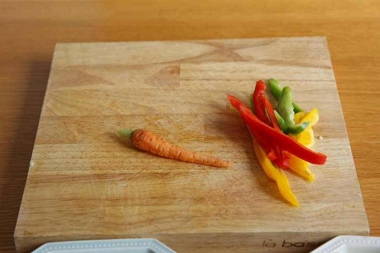 清洗蔬菜擦干水分,切成片状或块状。(蔬菜的选择不要有太多汁水的,颜色丰富点)