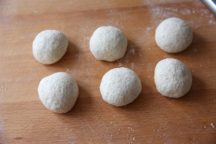 面团发酵至1.5倍大后轻轻取出排气,称重,分割6等份。