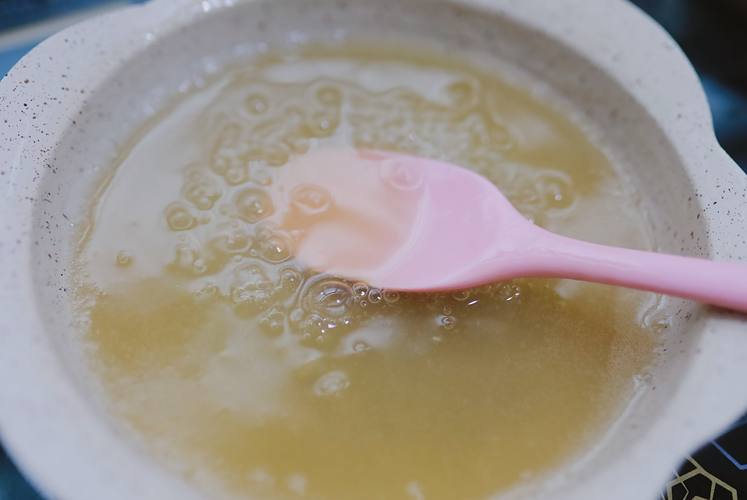 蒸好的苦瓜原汁倒入锅中加入一点淀粉,勾芡用。