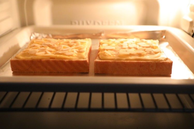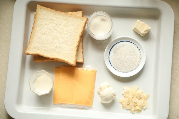 1. 吐司片尽量选偏厚一点的,口味比较合适,太薄的话可能会腻。喜甜的可以在步骤4做好的芝士溶液里加入1-2g蜂蜜,表面上色也会更漂亮,但烤制最后两分钟最好守在烤箱旁,避免上色过深。