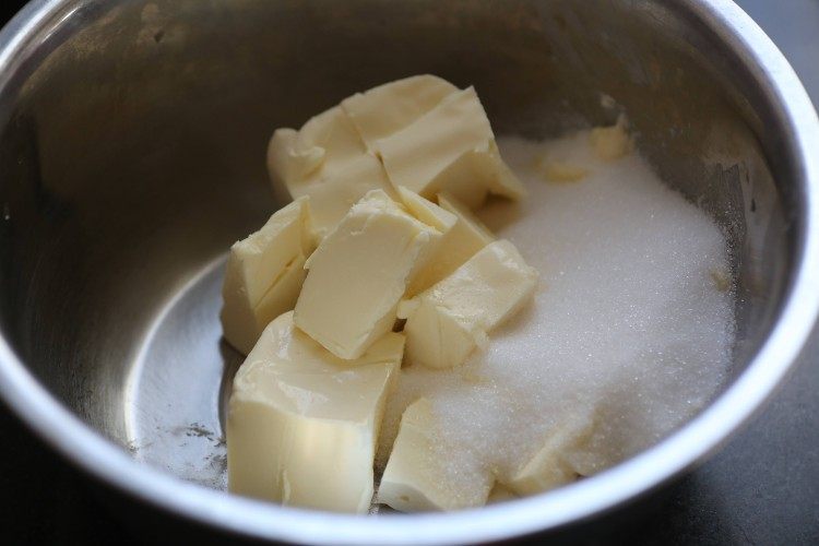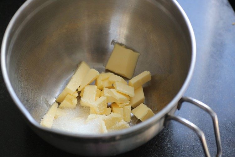 首先制作饼皮,黄油软化软化到牙膏状,加细砂糖搅拌至顺滑(不要过度打发)。