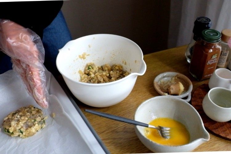 搅拌好的材料用手团成饼状,假如太稀团不成饼,可以适量加淀粉。