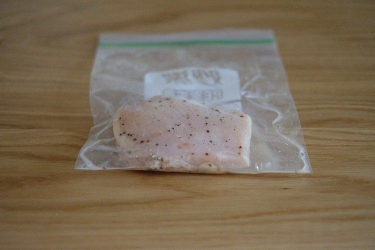 鸡胸肉洗净用厨房纸吸掉水分、加盐、黑胡椒、蜂蜜、柠檬汁充分按摩,冰箱冷藏一晚。