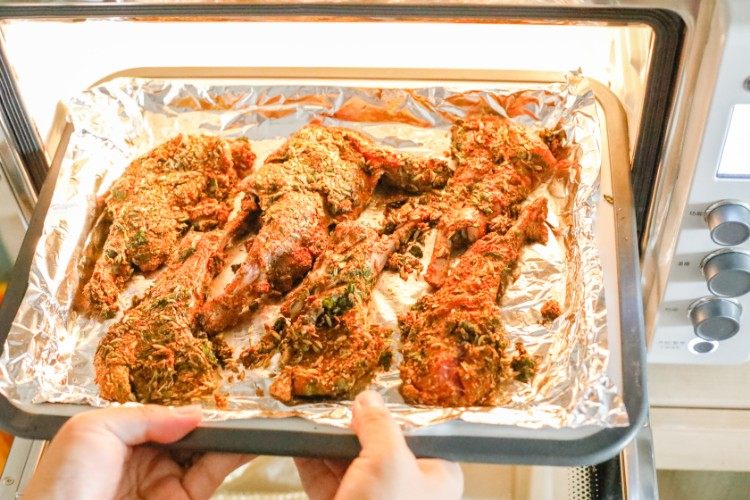 4. 全程烘烤时220度,整个烘烤时间23分钟,建议根据羊排大小以及自家烤箱情况增减时间,这个时间烤出来羊排鲜嫩多汁,不建议烤制时间太长,羊排烤老了就不好吃啦。