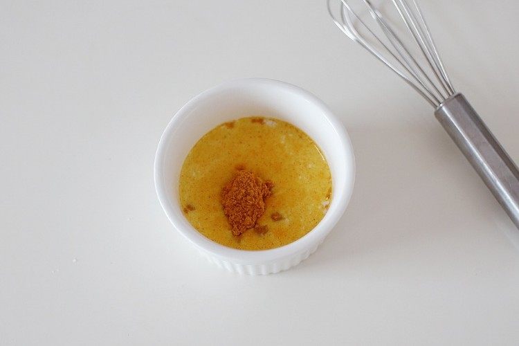 把所有食材倒在大碗里,倒入牛奶咖喱液翻拌均匀 让每个食材沾上牛奶咖喱,再加入油翻拌一下。