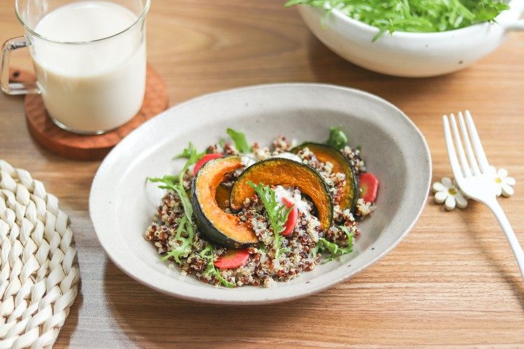 经过烘烤后的南瓜口感绵软,搭配瘦身人士都爱的超级食物藜麦,再随意搭配一些自己喜欢的蔬果做成沙拉,营养美味无负担!