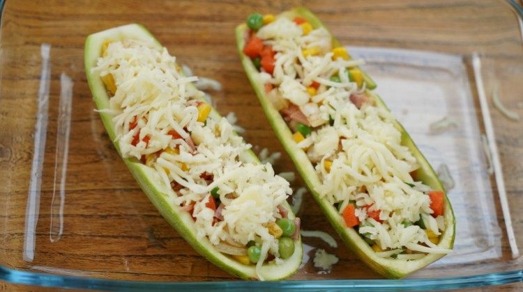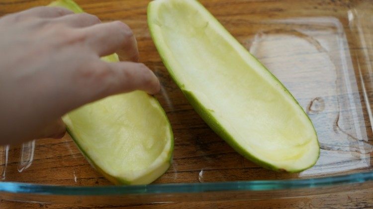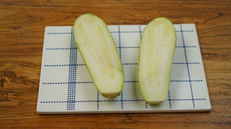 烤盘涂上橄榄油,把西葫芦底部沾上油。