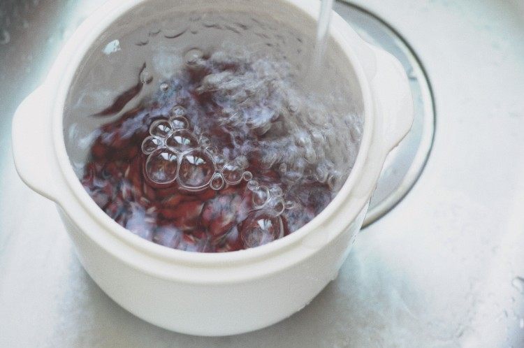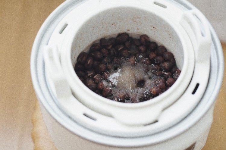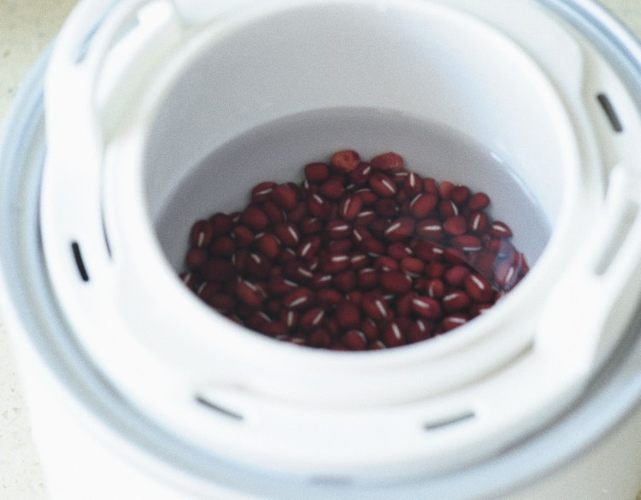 红豆清洗干净倒入炖盅,豆和水1:2。