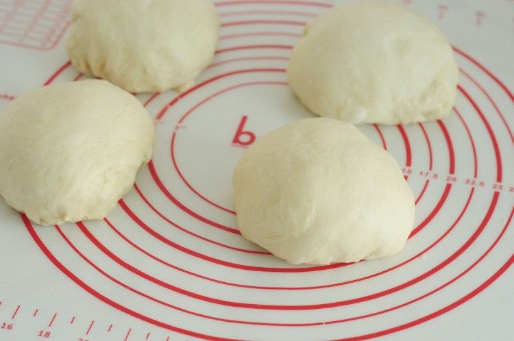 发酵好的面团分成四份,排气滚圆,松弛20min。