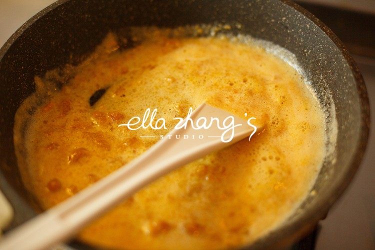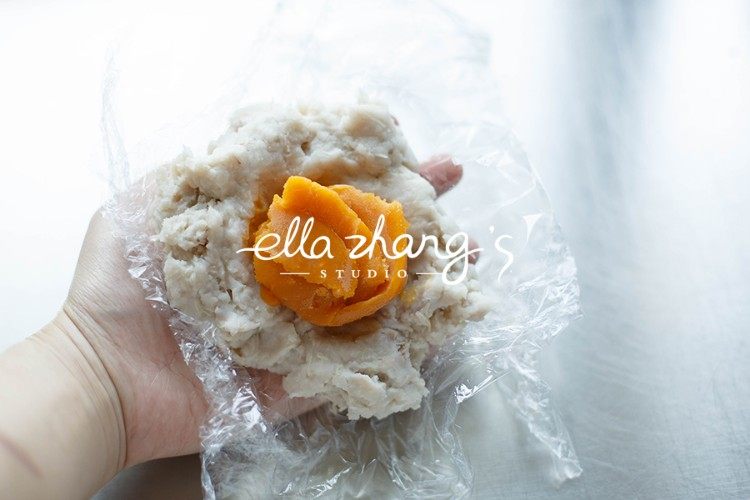 3. 这个咸蛋黄馅比较稀,如果喜欢稠一点的可以少放点植物油。