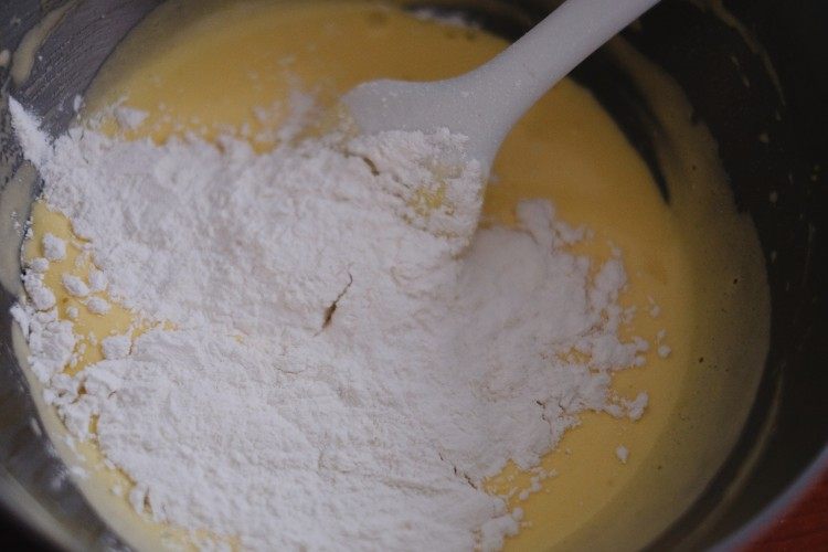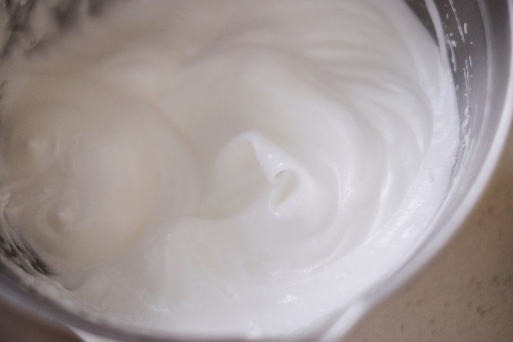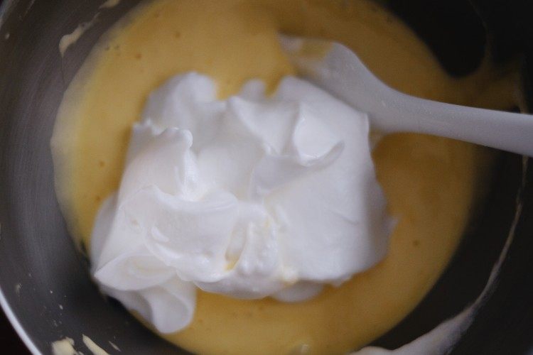 将剩余的三份之二的蛋白霜加入做法4翻拌均匀。
