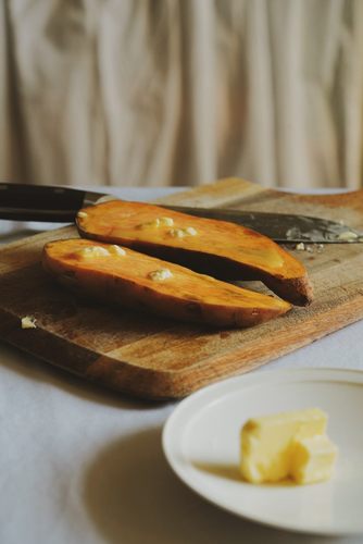 这道菜没有牛排,是因为红薯的形状像牛排。