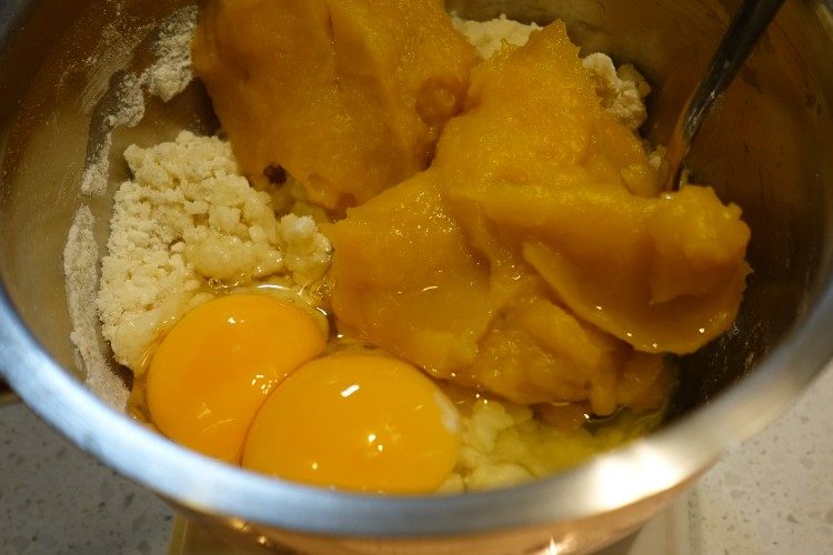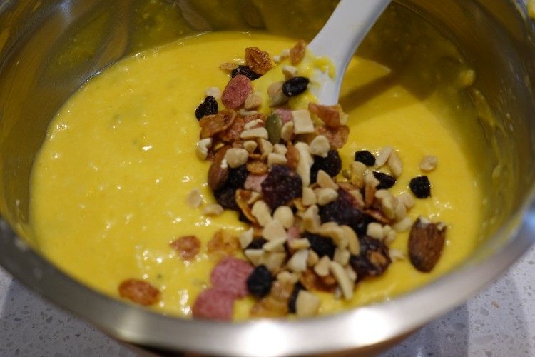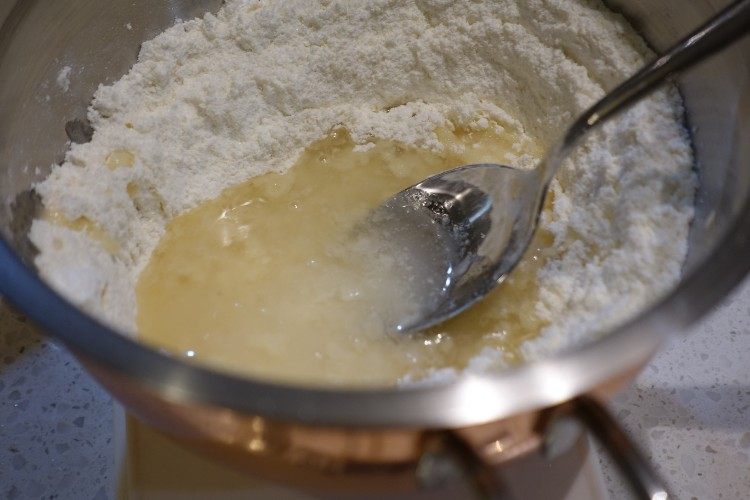 1. 把所有东西搅拌在一起尽量搅拌到没有结块的面粉。