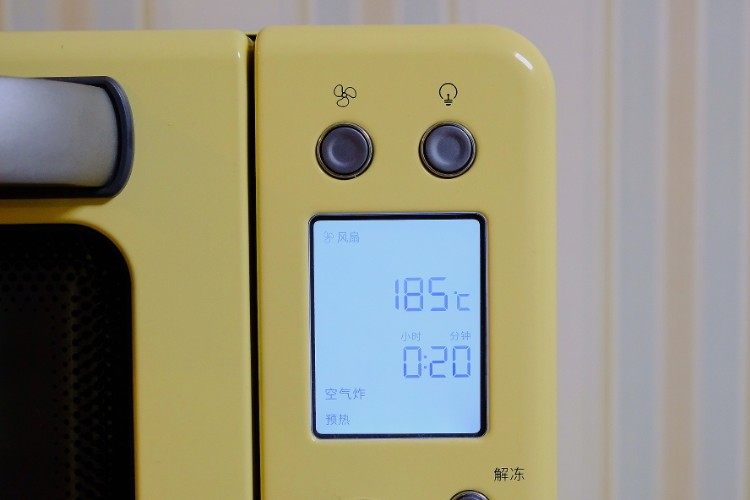 烤箱预热:北鼎T535Y烤箱功能选择“空气炸”,温度185度,时间20分钟,启动预热。