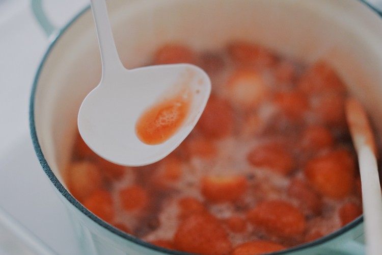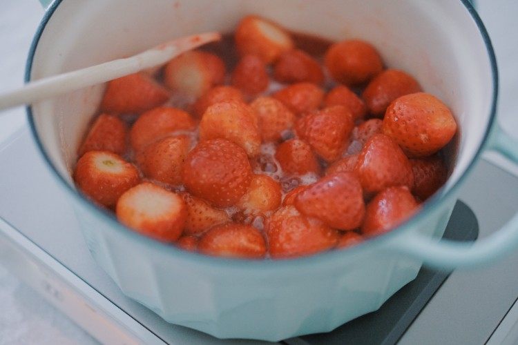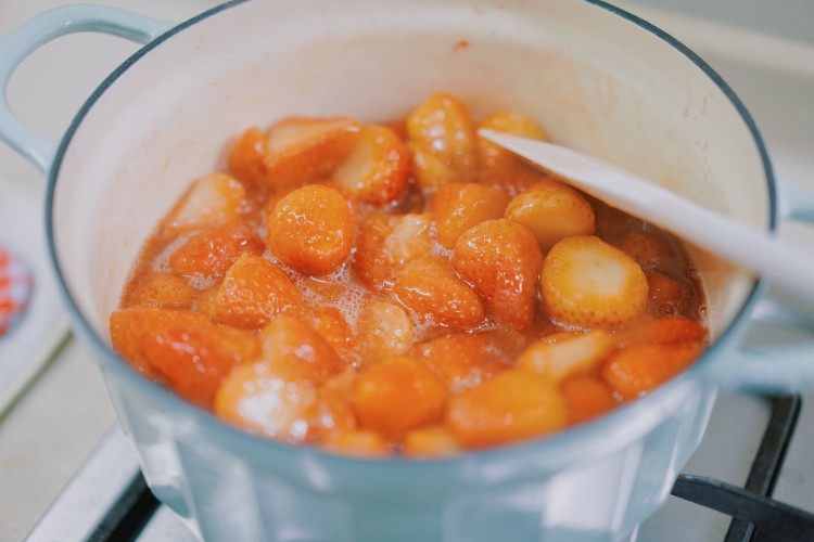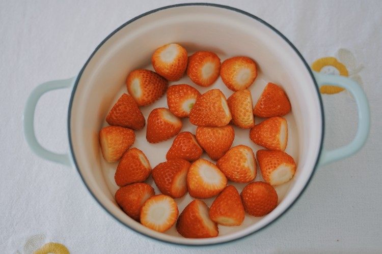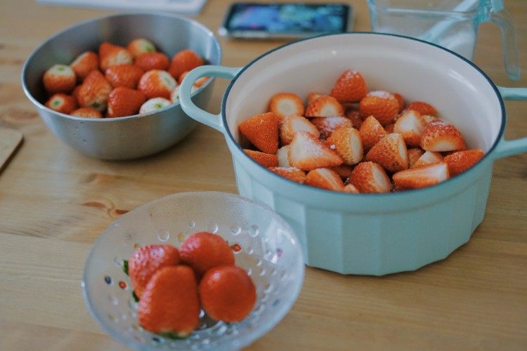 2. 这次煮得比较多,用了北鼎的新珐琅锅,能把草莓平铺开煮真 的太爽了!