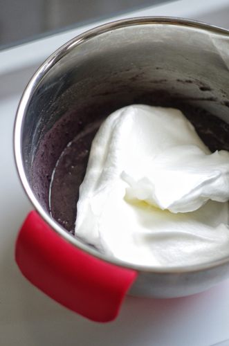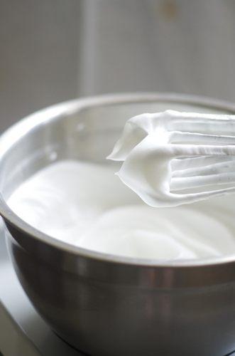 打发好的蛋白出现小尖角即可,不需要打到完全干性发泡。